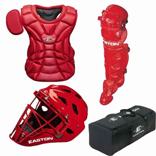 Easton Natural Catchers Set...Ultimate Protection! Easton Youth Natural Catchers Gear Set features: Includes catchers helmet, chest protector, leg guards, and equipment bag 2 models available: Ages 9-12 12-15 Helmet: Hockey style catchers helmet Durable ABS shell provides superior protection Strategically placed aerodynamic venting system Durable steel cage Soft vinyl chin pad Ages 9-12 size: 6 1/